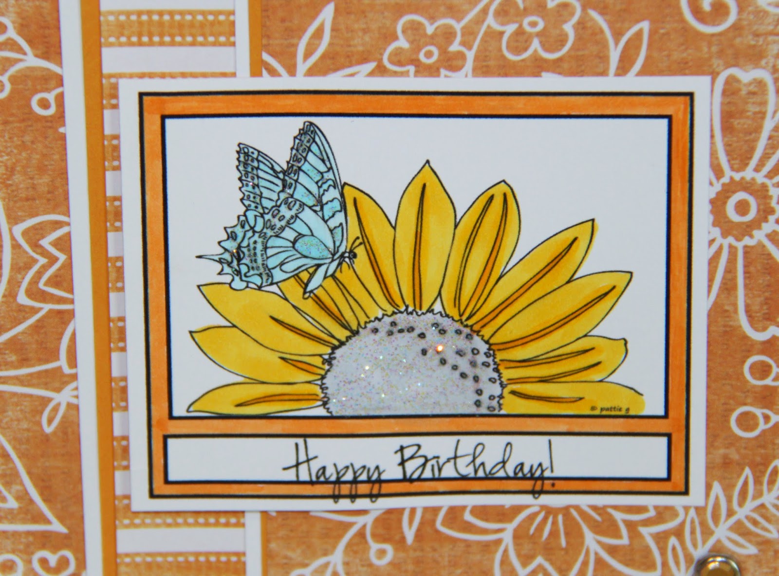 This is a Pattie's Creations image inside a frame by Bugaboo and a sentiment I made in Photoshop. I love this flower and colored it with Copics. It has to has some glitter on inside.